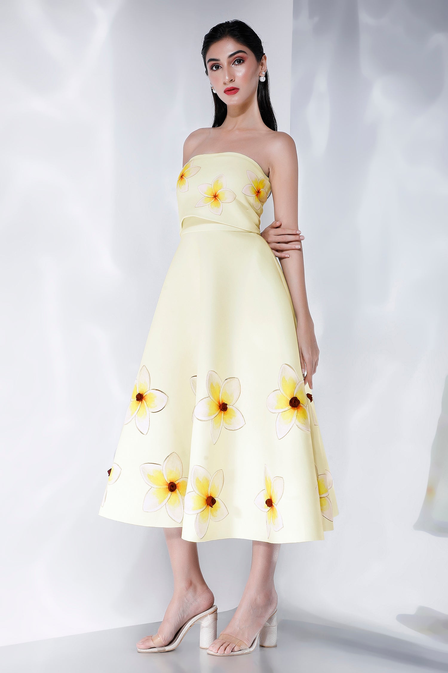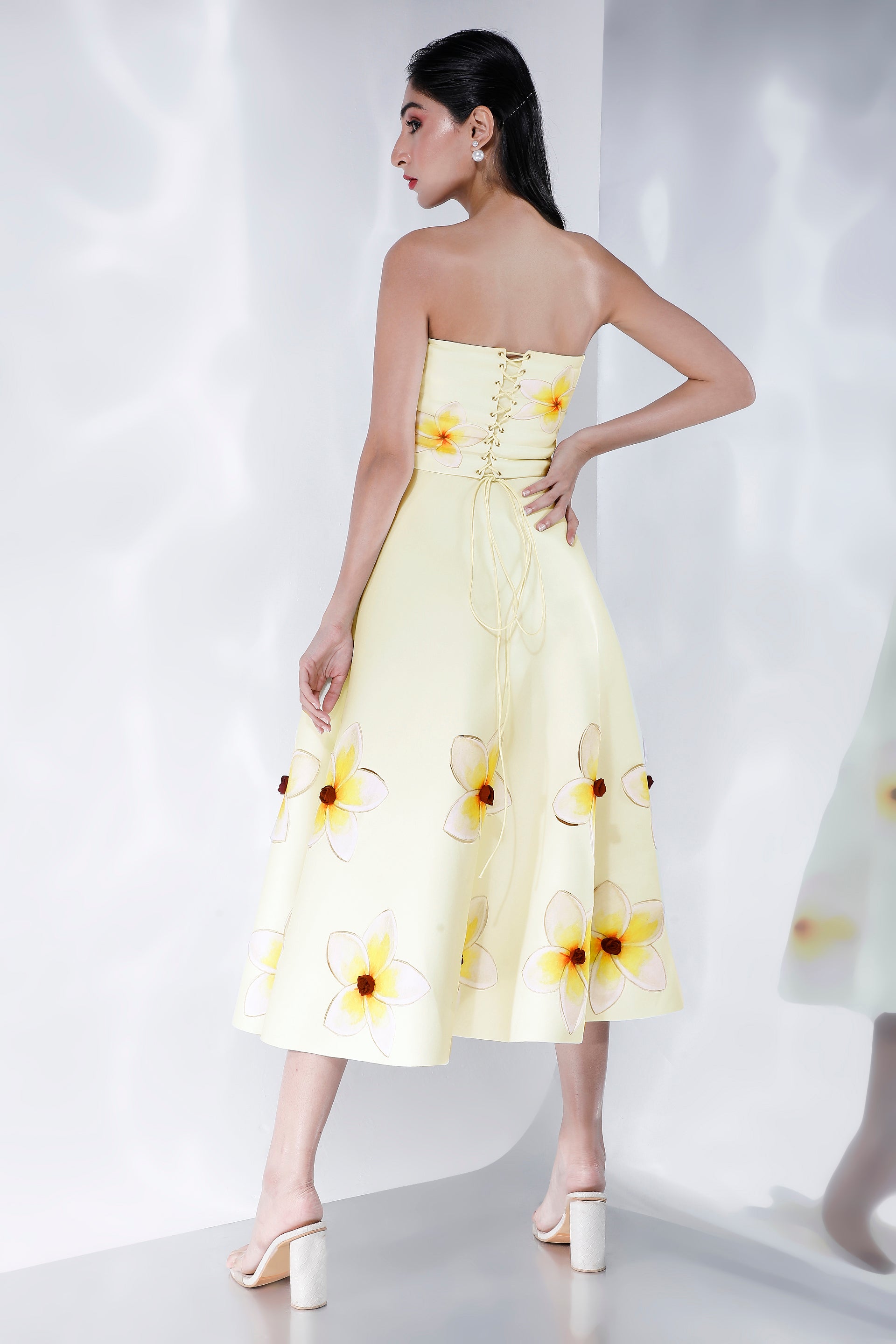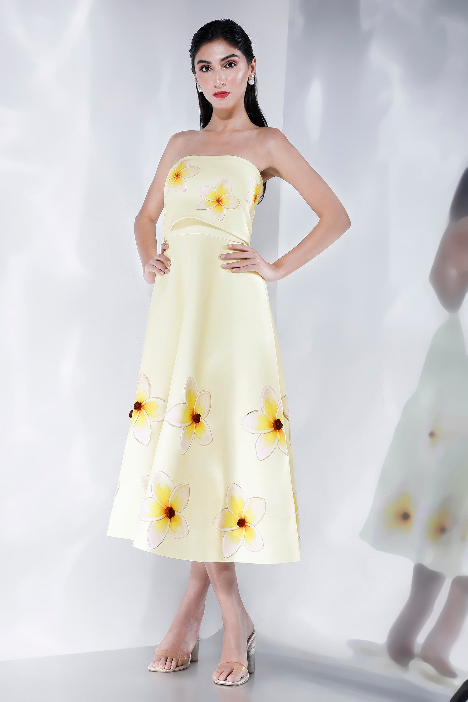 Cordelia is a fit and flare midi dress that combines modern style with classic floral motifs.