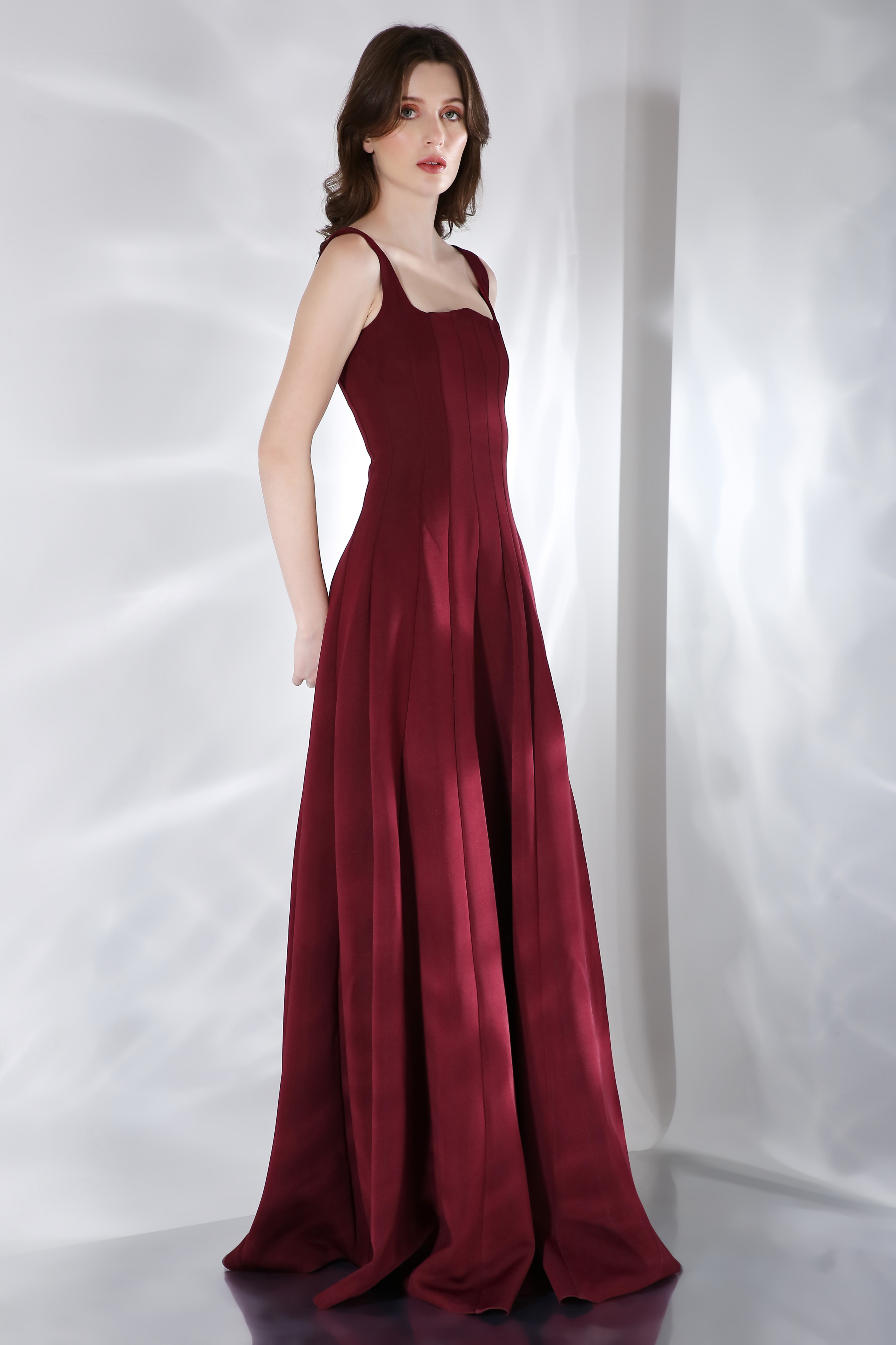 Featuring a panelled gown which is fitted till the upper waist and flares out thereafter, giving it a structured look. Since the gown is custom made for you, the slit is optional.