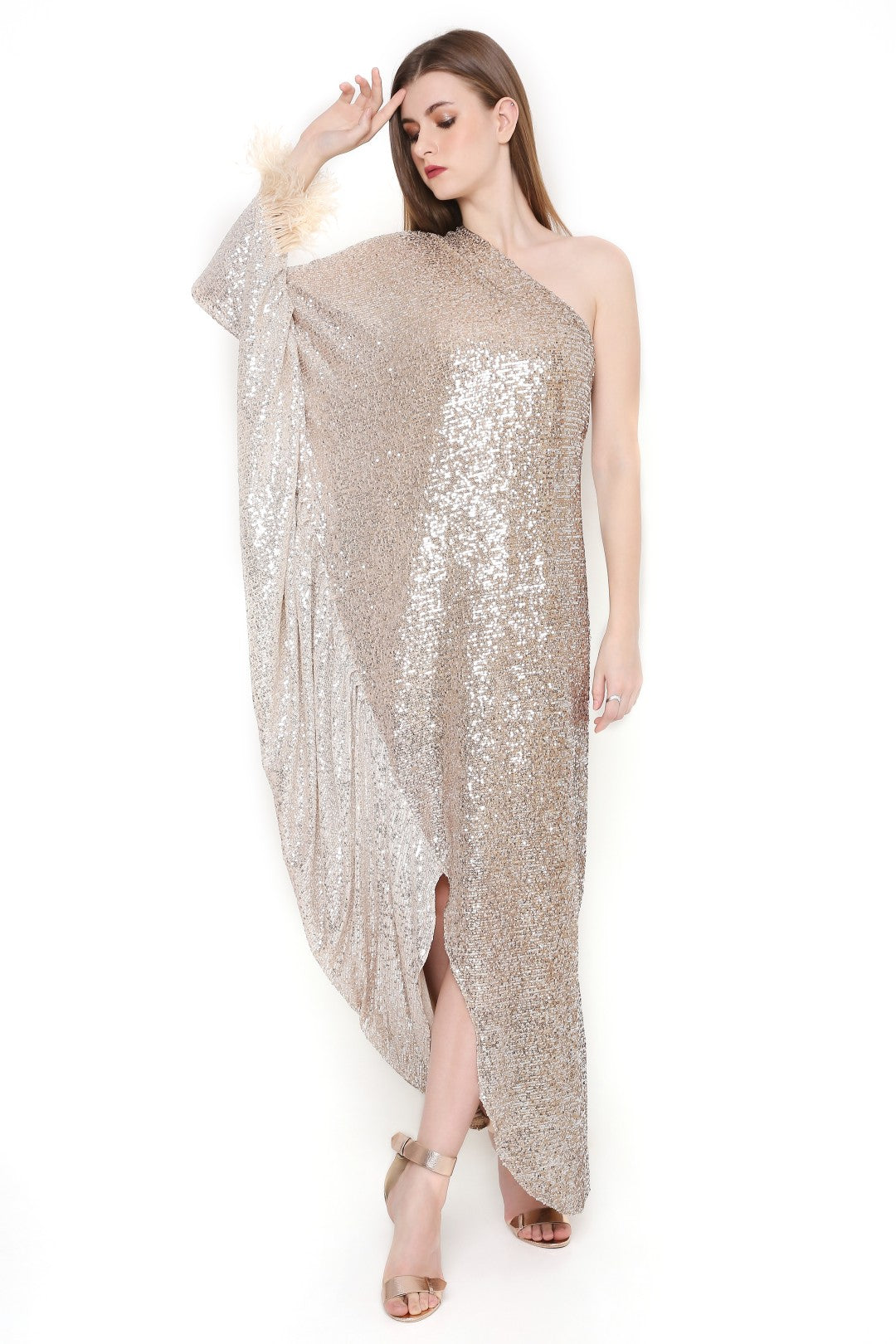 The silhouette flatters your body beautifully! With a comfortable fit, feathers and a one shoulder pattern, this exudes elegance at any age and for every body type.