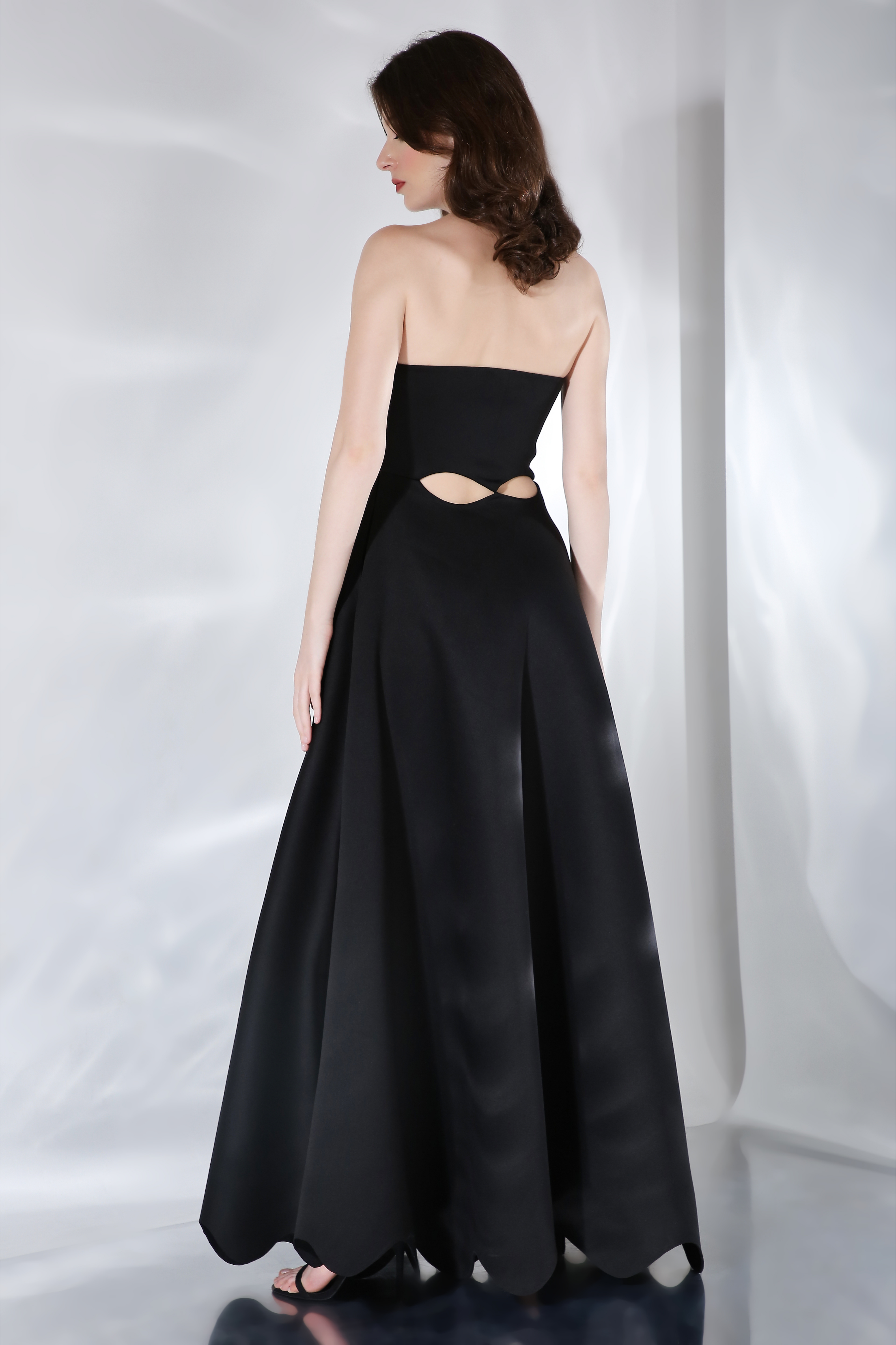 Featuring a fit and flare scalloped dress with waist cut outs. The wrap also comes with wavy detailing.
