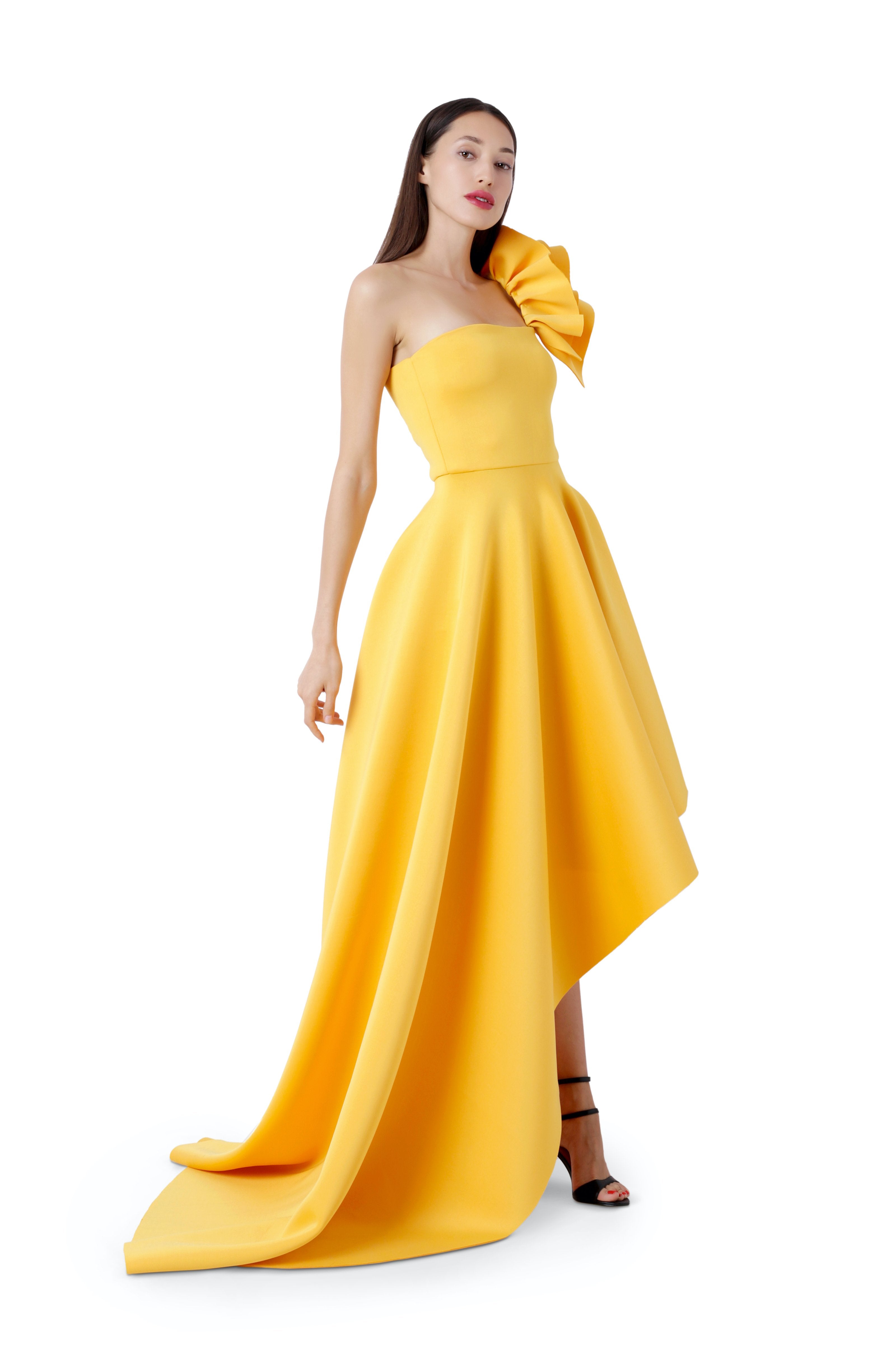 Add an extra edge by putting on the one shoulder frill add-on and wear it on or off the shoulder!
