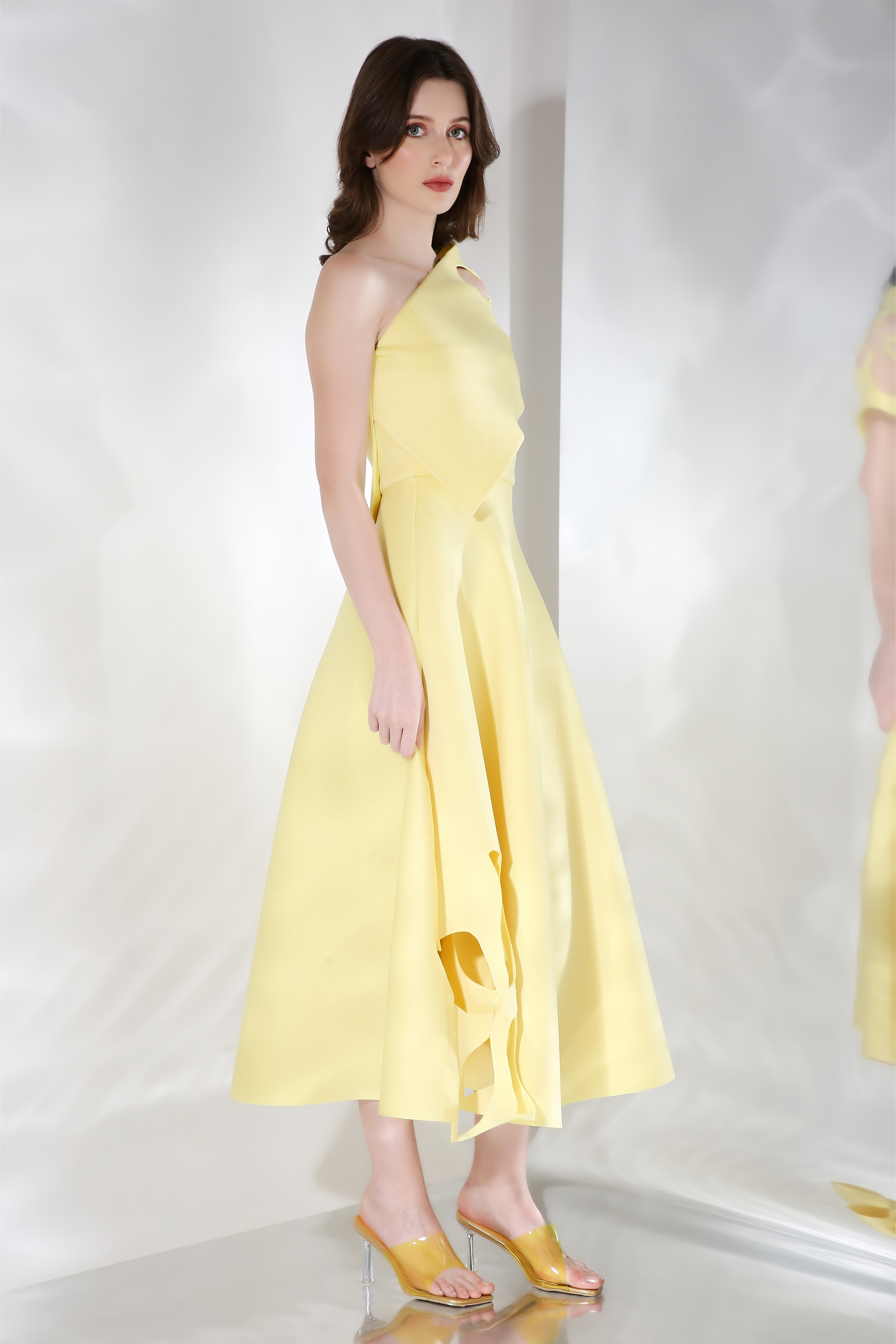 Featuring a fit and flare dress with floral cutouts on the base and detachable. Wear it in three ways,