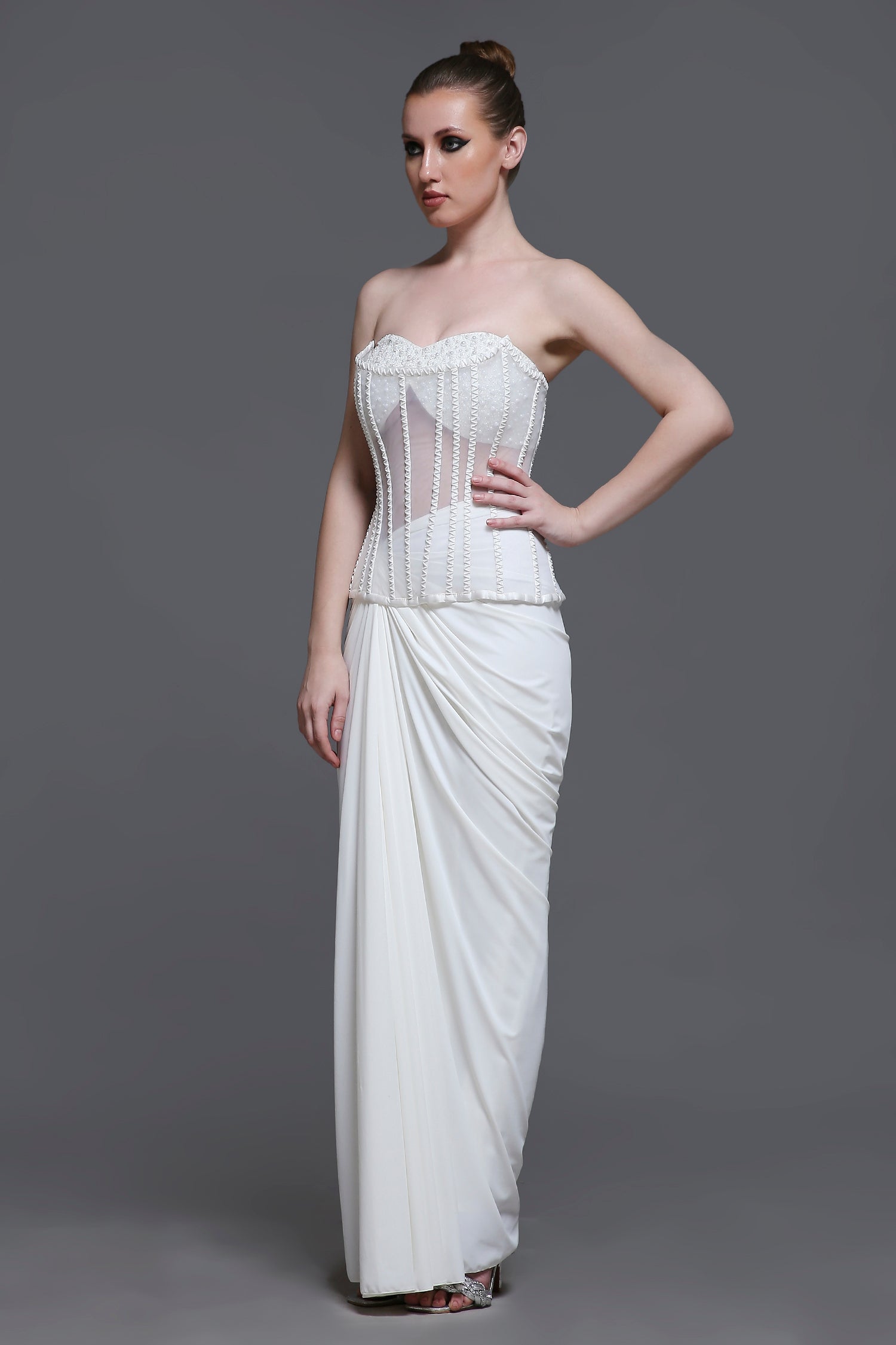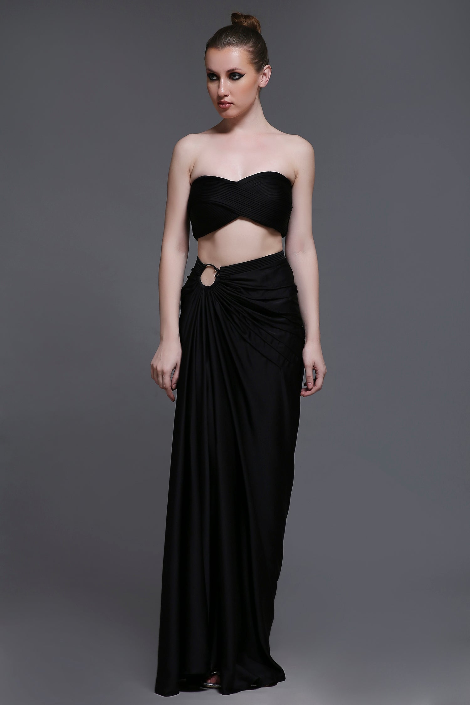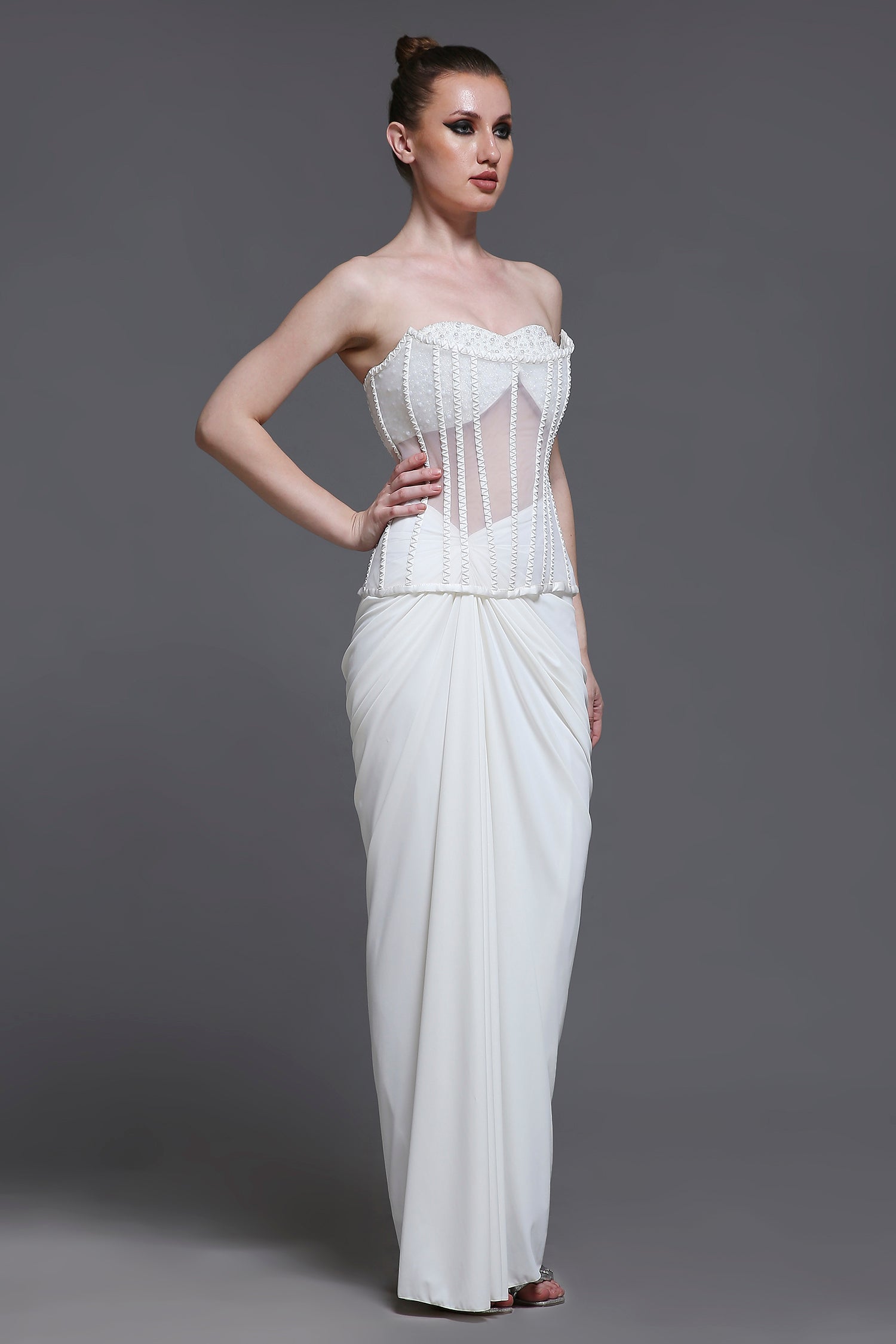 Discover the perfect fusion of traditional Indian elegance and contemporary Western style. Our Indo-Western collection features innovative designs that blend the best of both worlds - from fusion corset sets to detachable drapes.