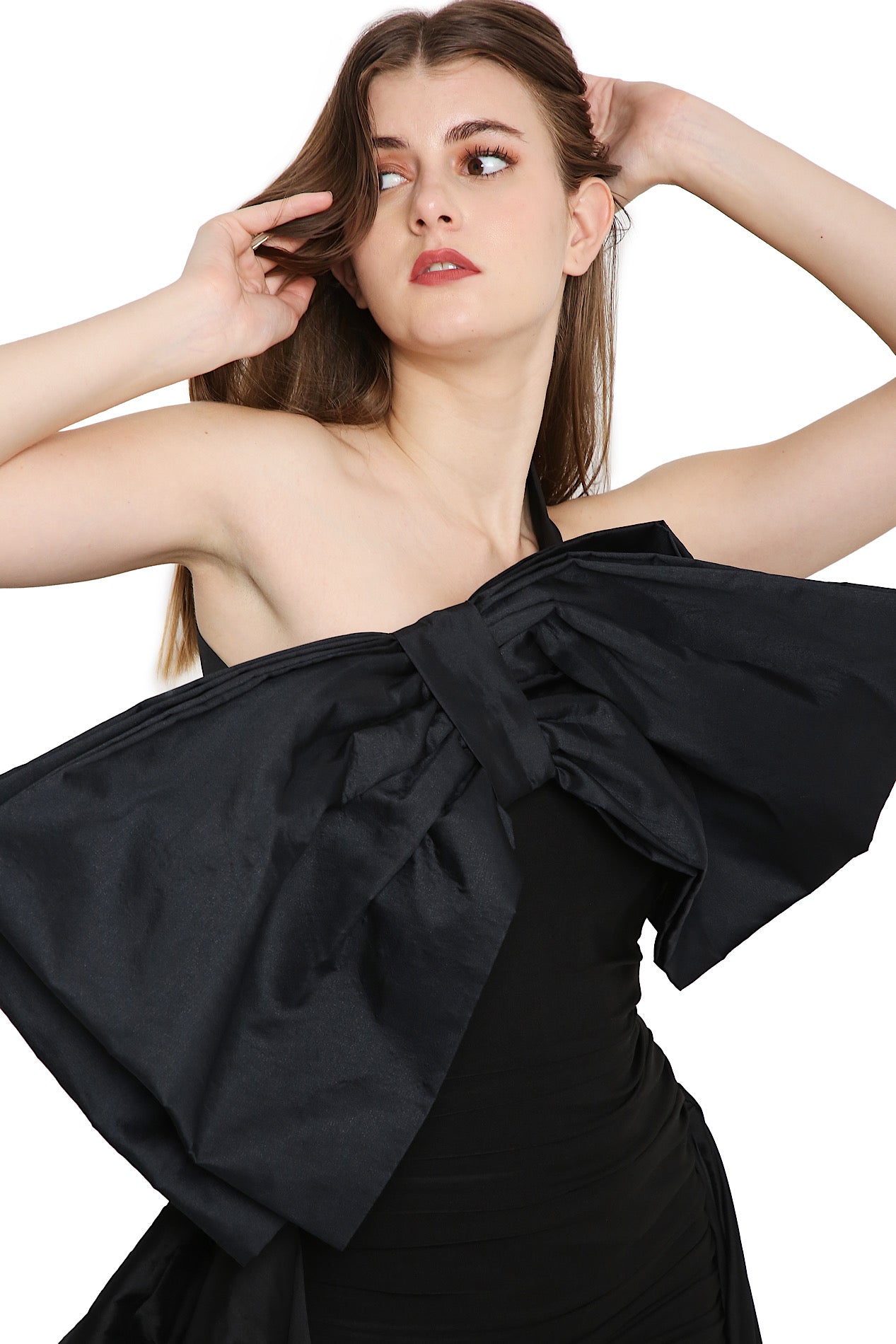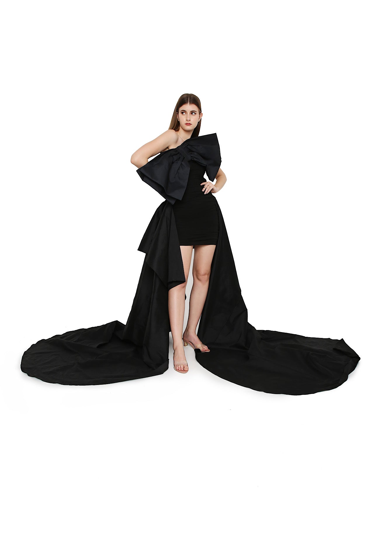 The taffeta trail is detachable and can be affixed over our garments or ypur existing ones. You can wear it on one side or both depending on the kind of exaggeration you’d like.