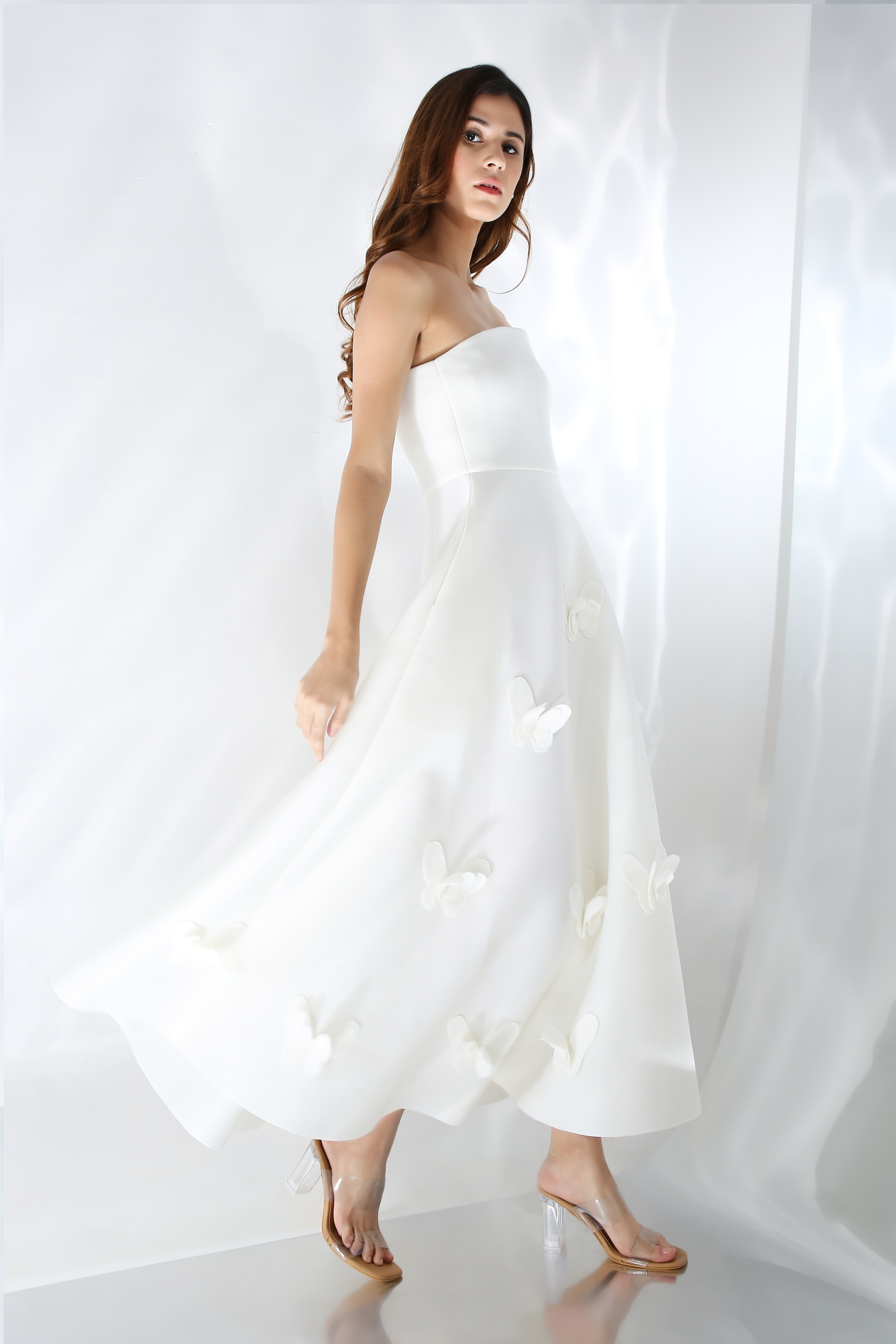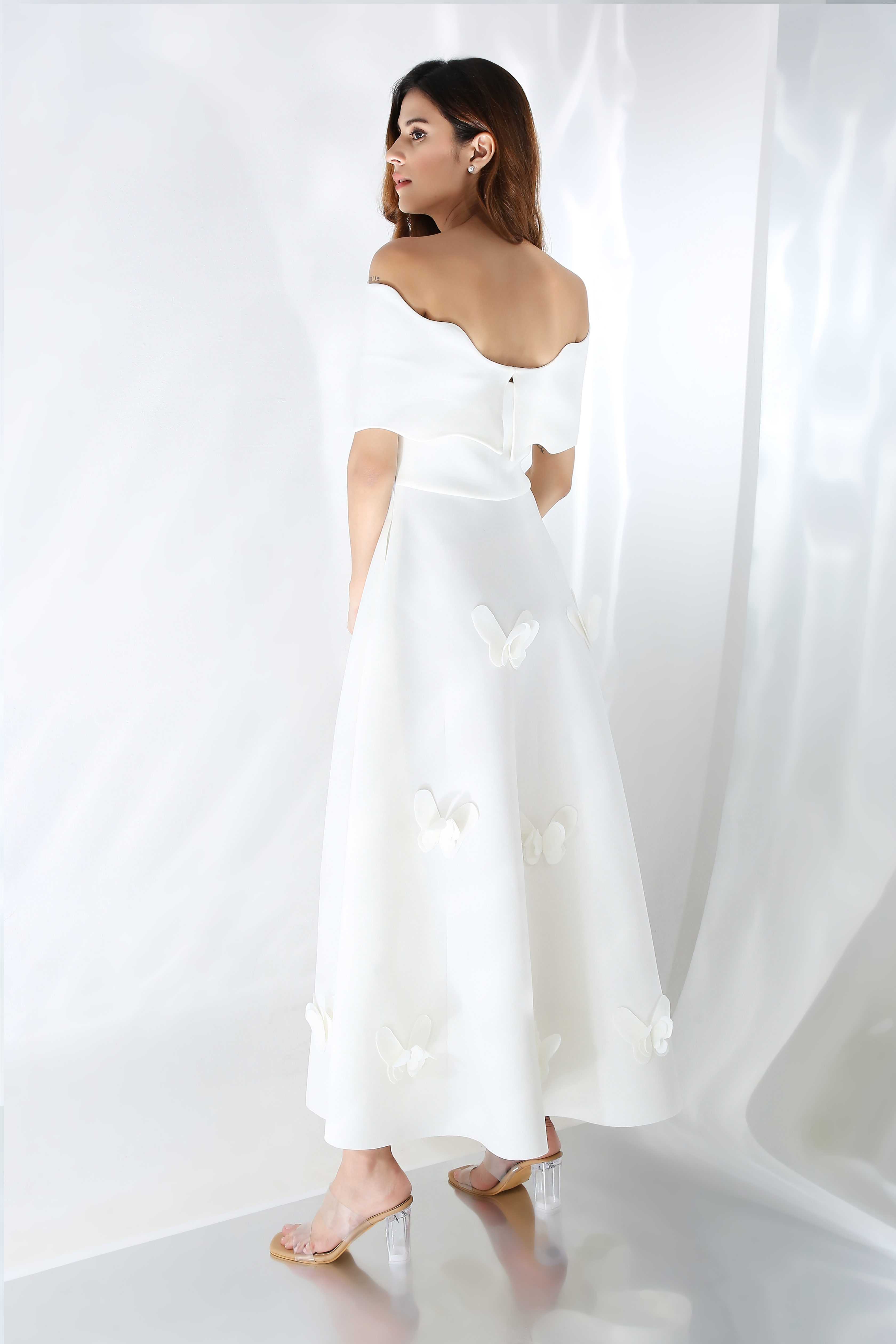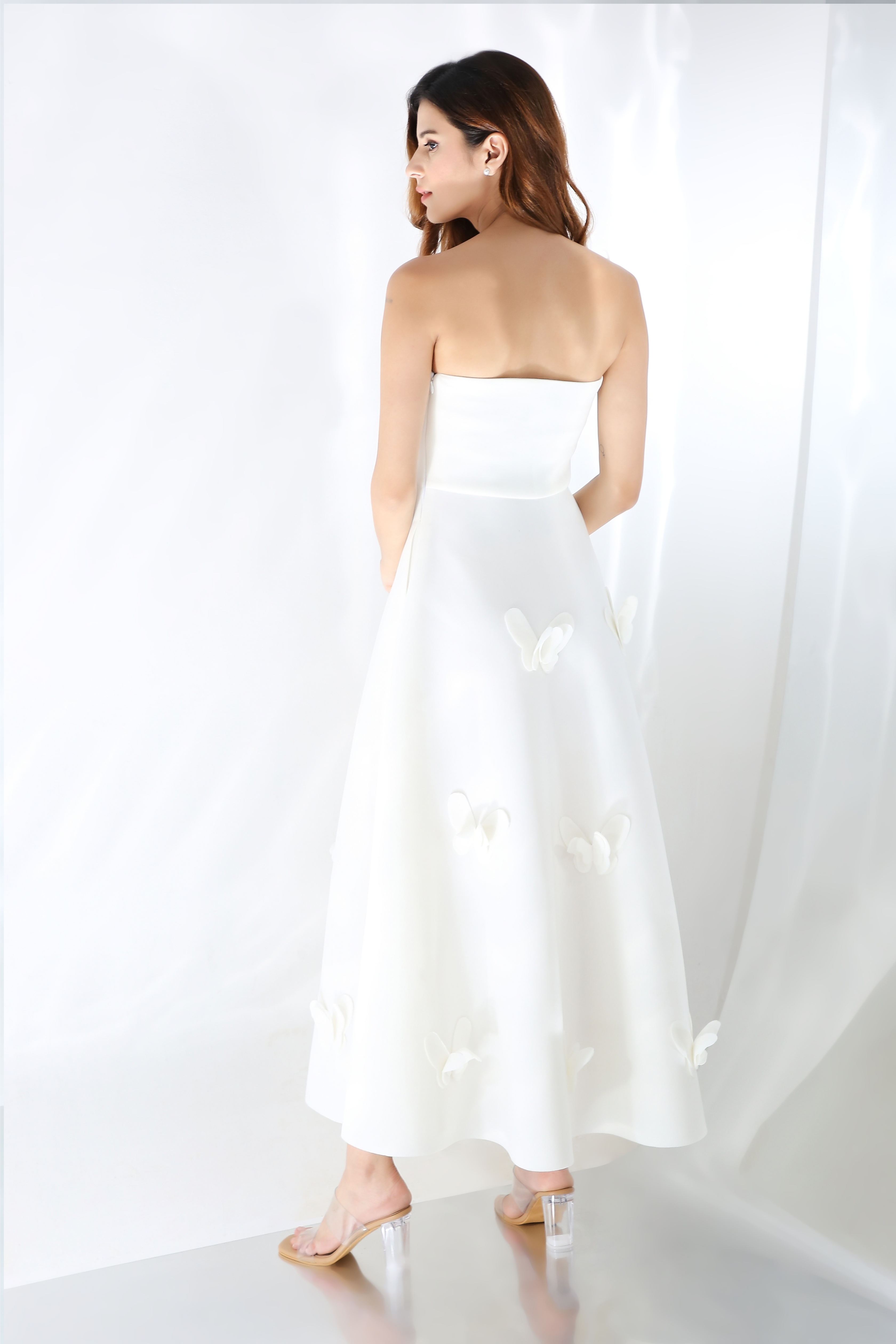 This is a made-to-measure product and you can also specify the exact length of the dress (measured from the shoulder to 3-4 inches above the ankle)