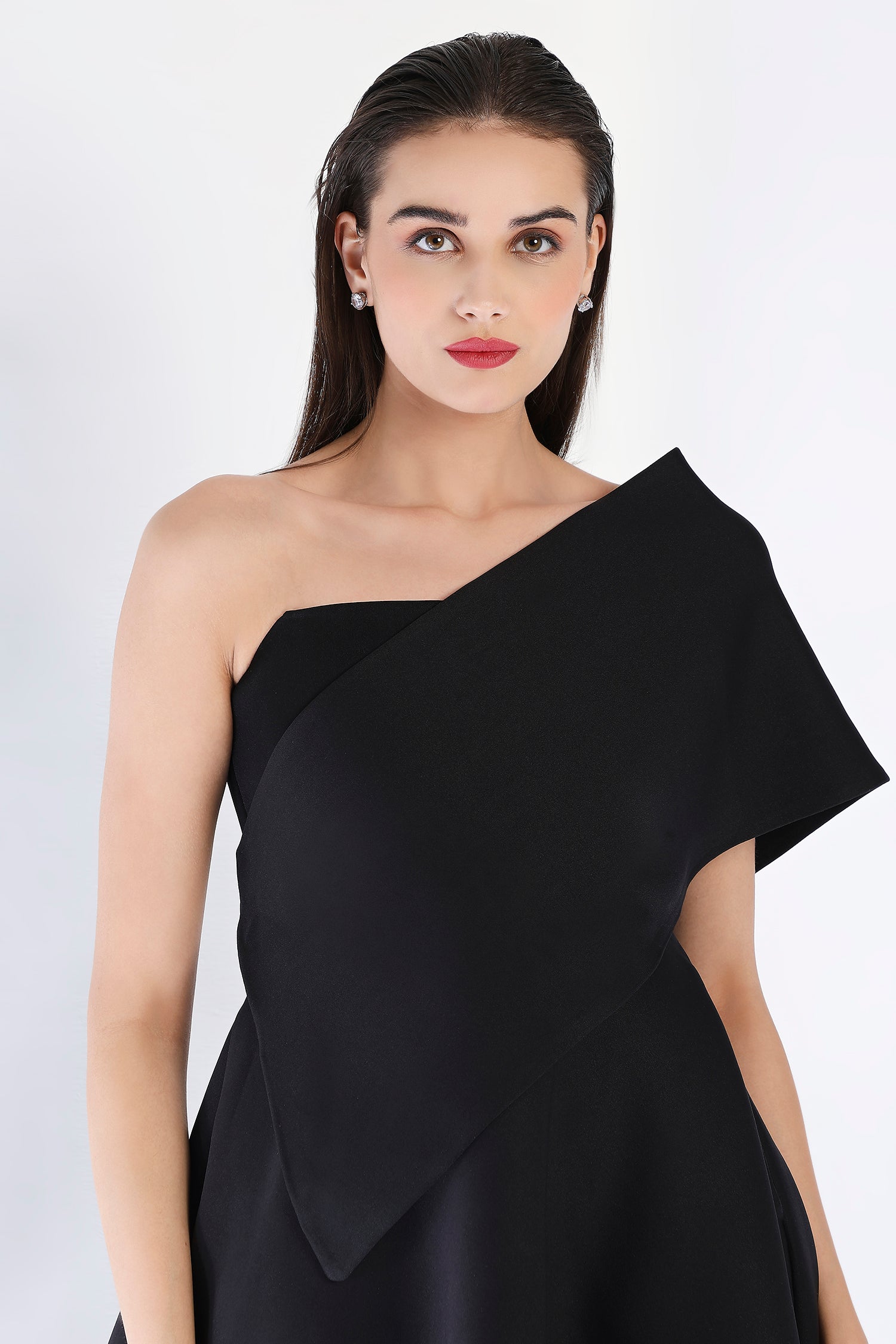 The detachable wrap enables this set to be worn in multiple ways- strapless, one shoulder or off the shoulder as depicted here. Fasten the hook and eye in front to get a front opening for a different look.