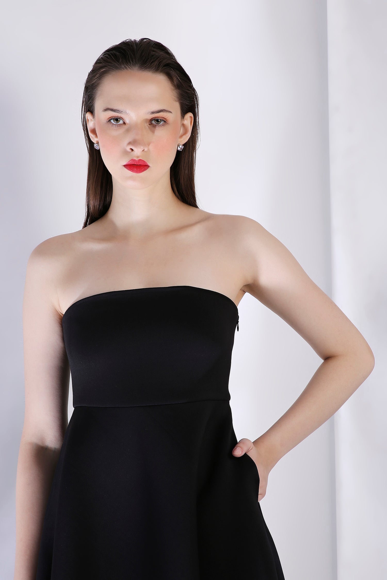Crafted for both structure and fluidity, it cinches the upper body and flares out gently — flattering across body types while maintaining a clean, sculpted fall.