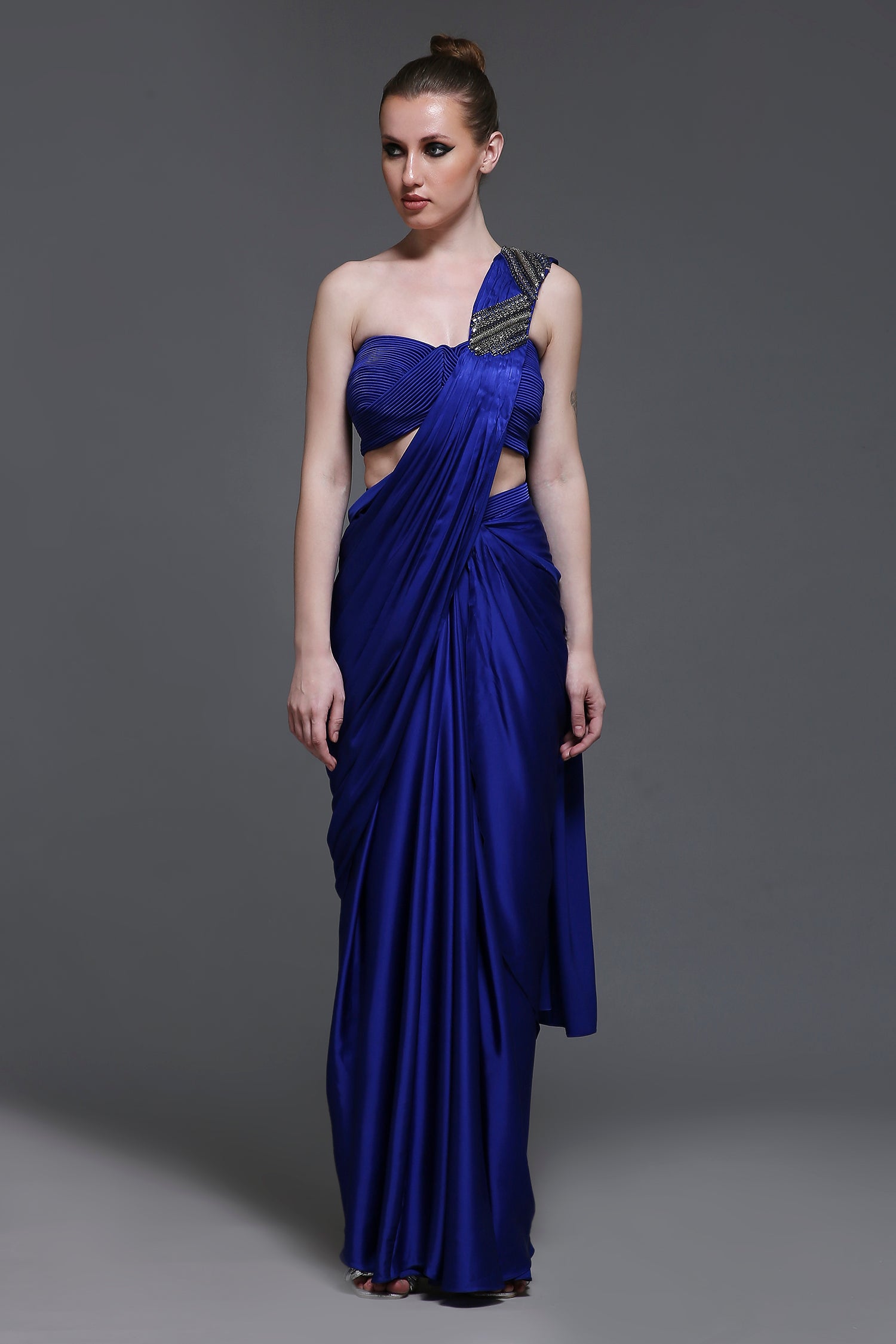 Our Charles Set features a short cord-detail bustier corset with a tie-up back for a perfectly tailored fit. The accompanying draped skirt adds fluidity and movement, creating a balanced, flattering silhouette. Completing the look is a detachable drape, adorned with exquisite hand-embroidered detailing, adding a touch of luxury and elegance. This striking ensemble is the perfect choice for making a statement at any special occasion.