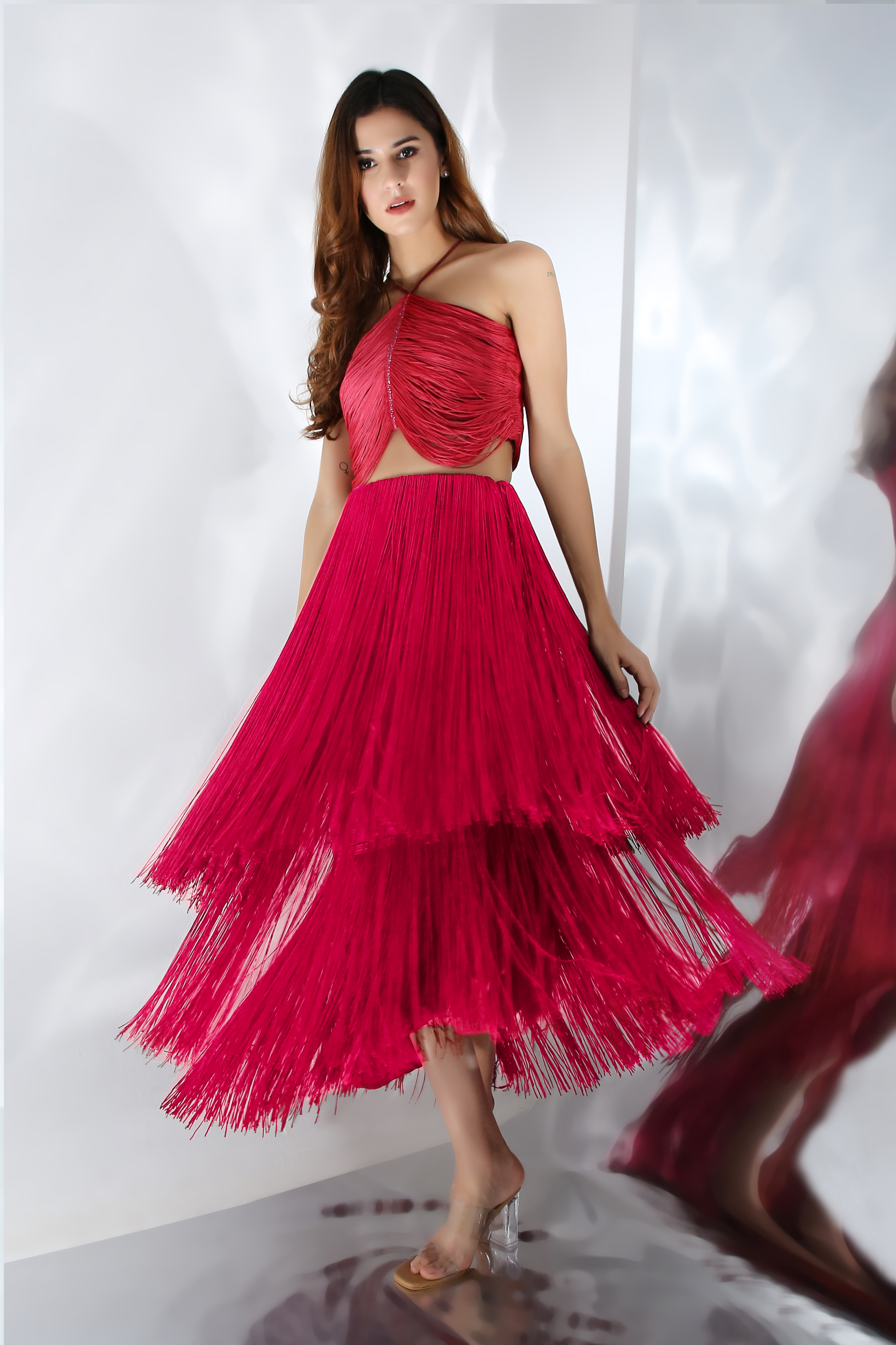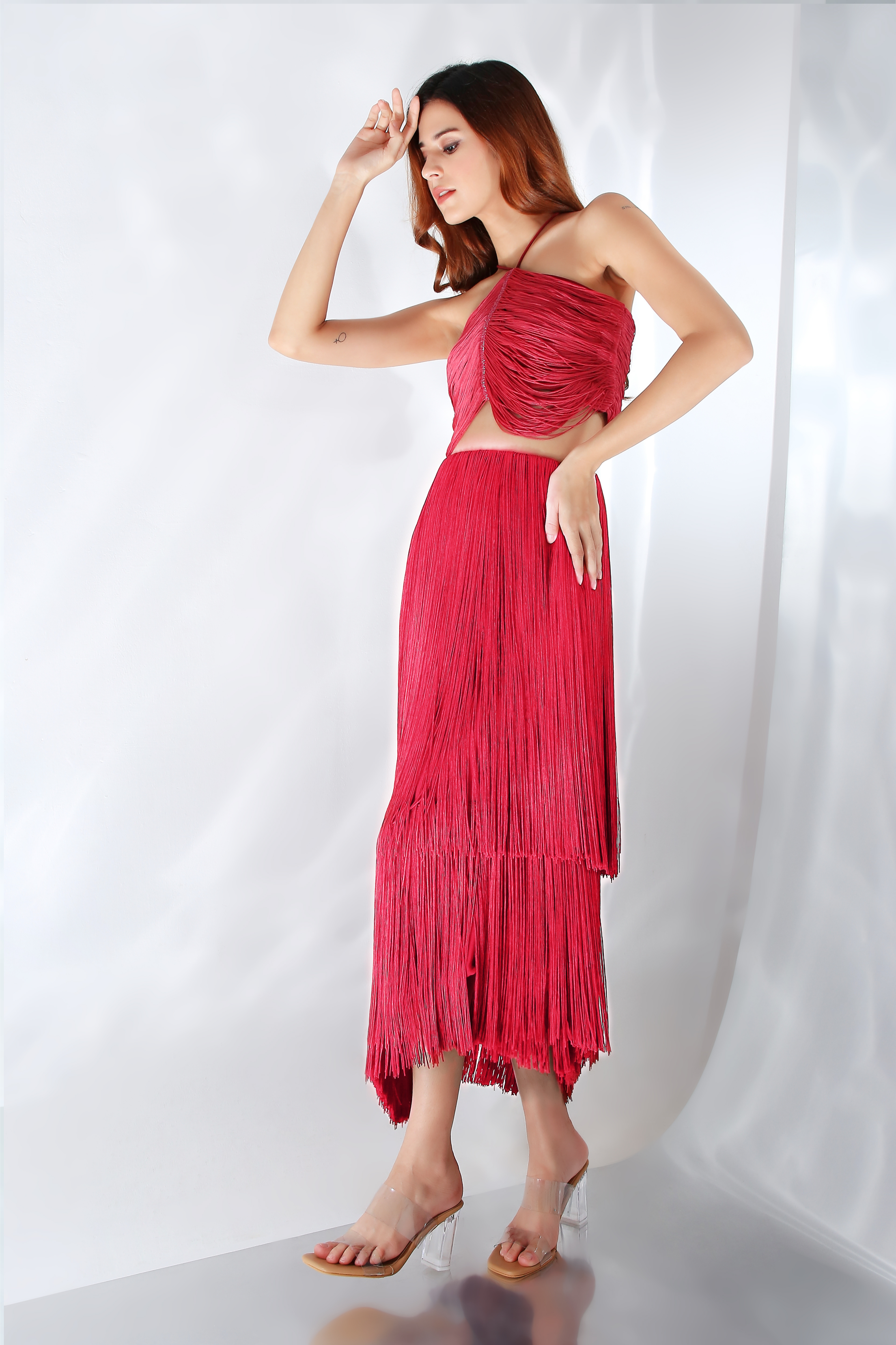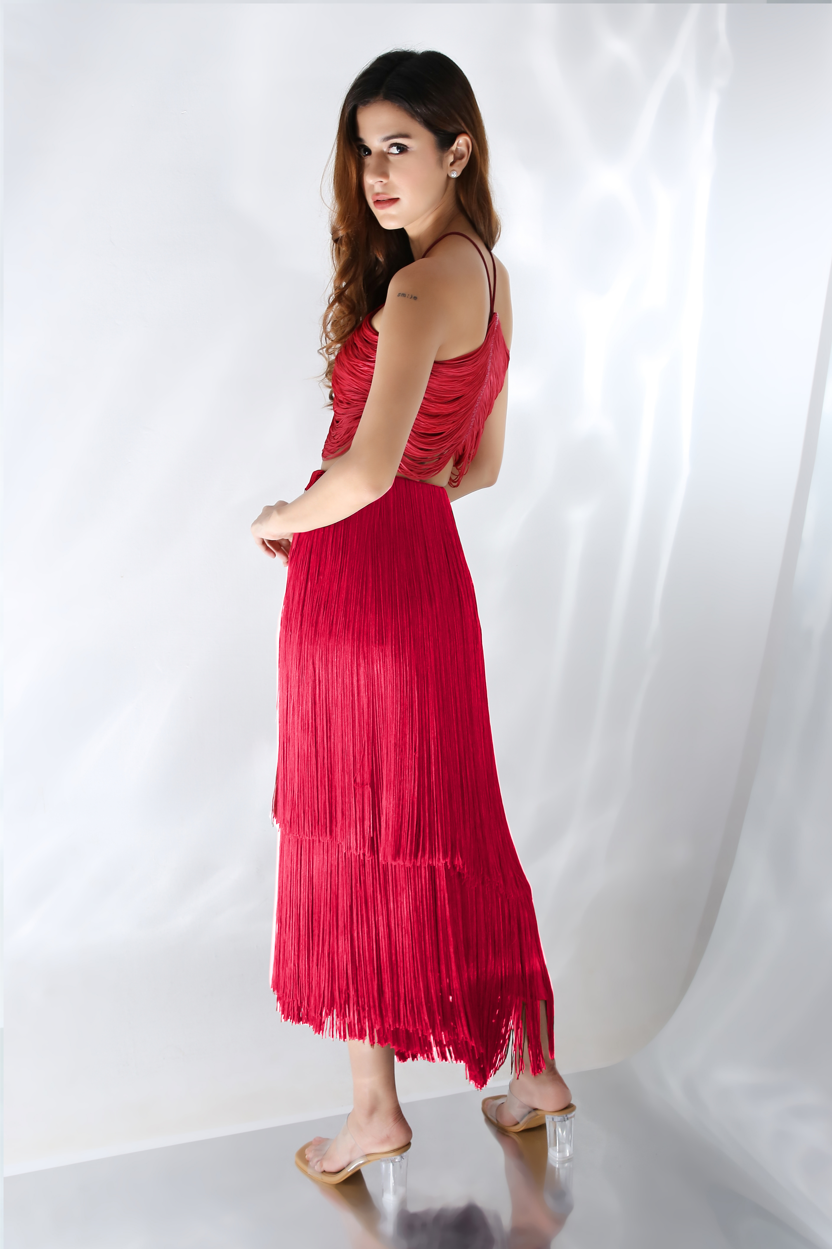 The fringe skirt has multiple layers to add more depth to the skirt.