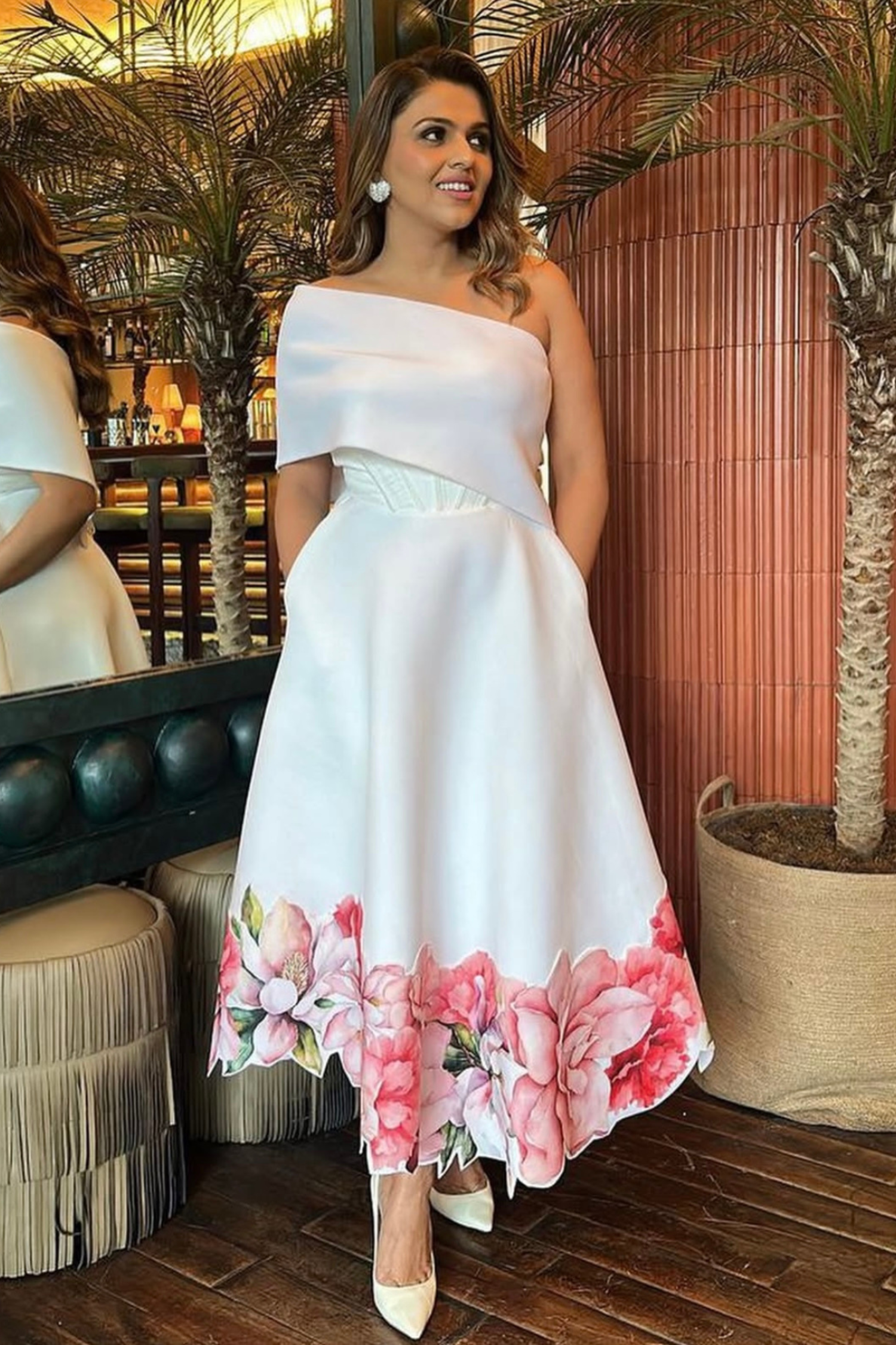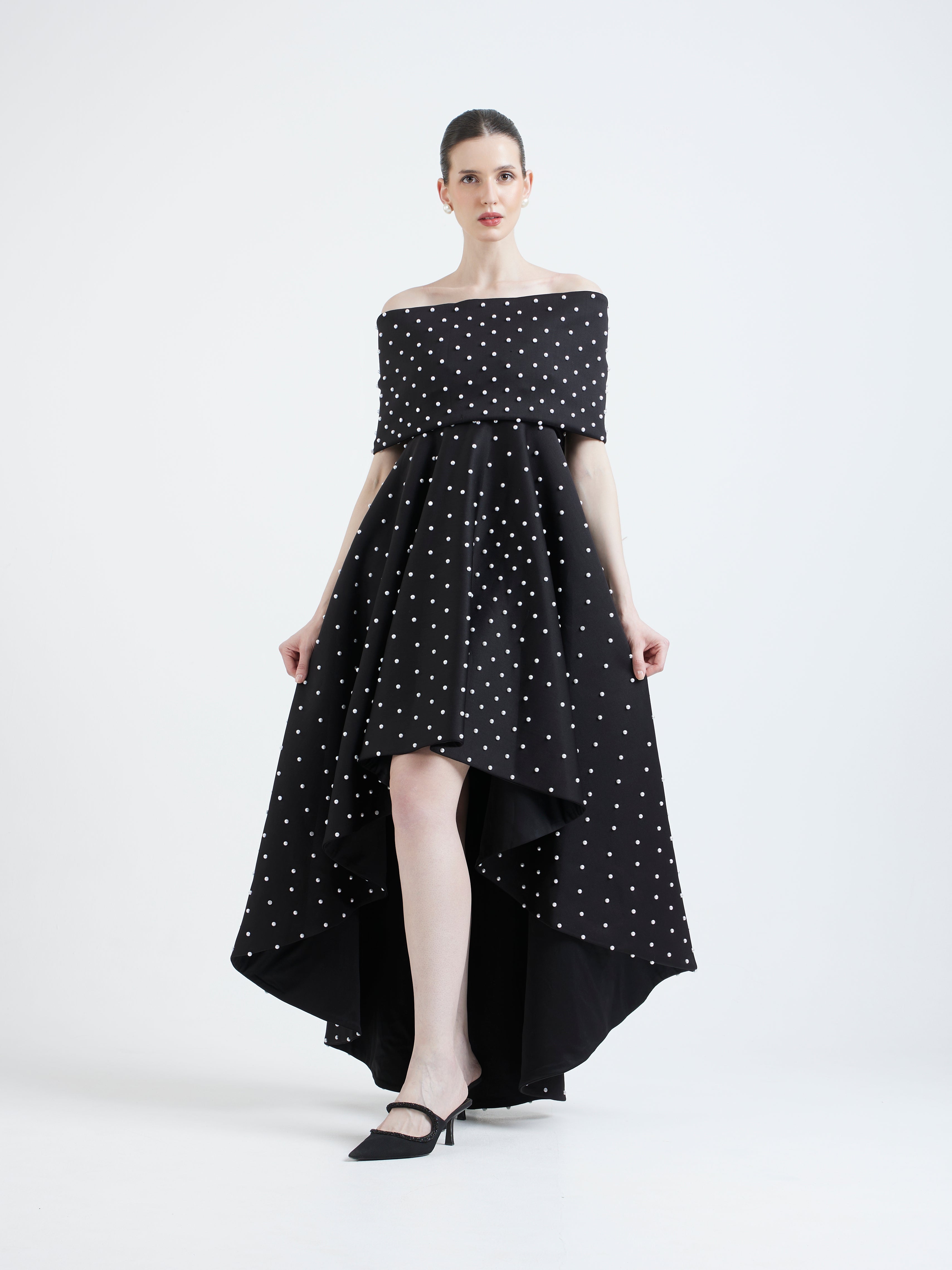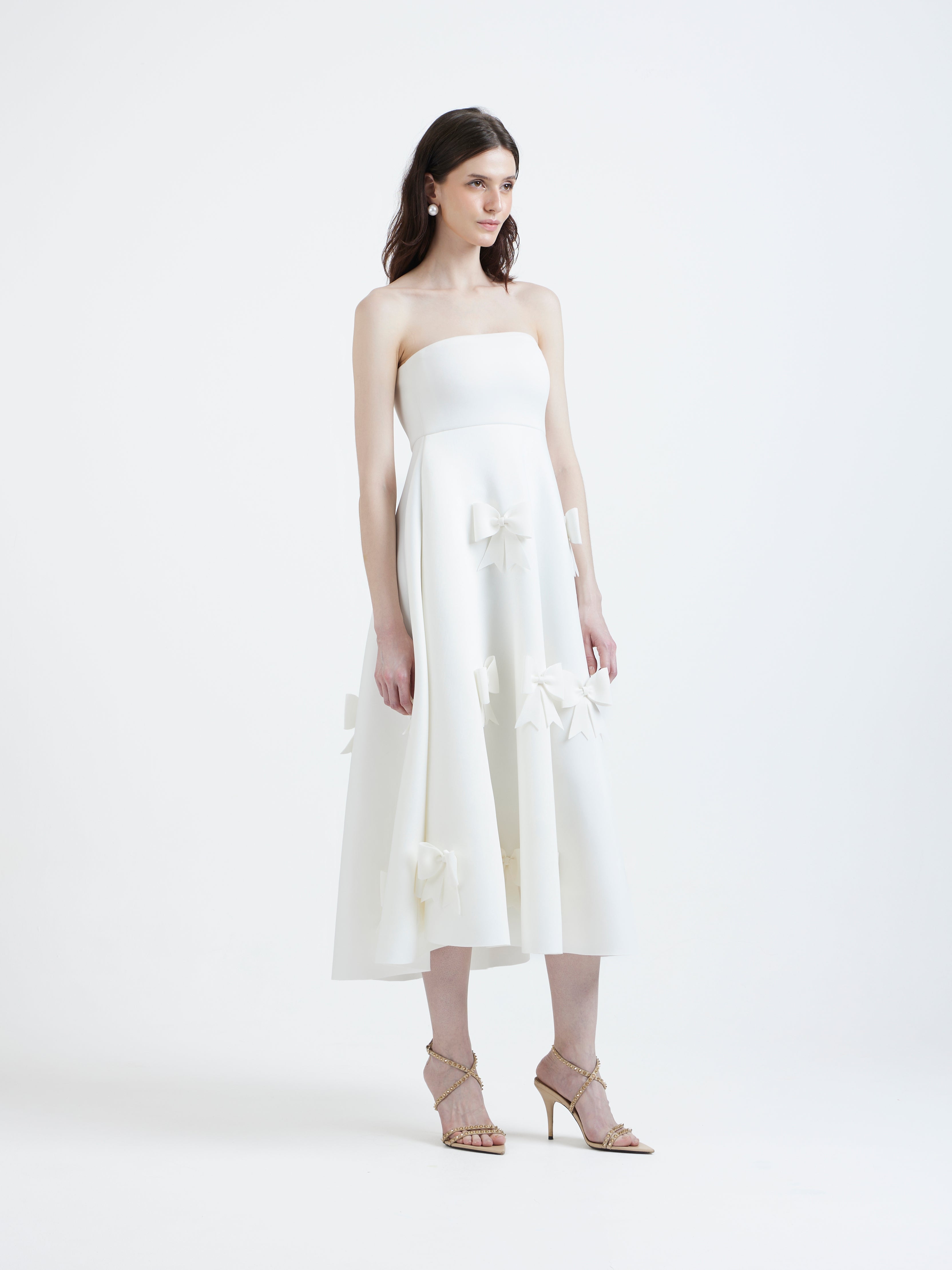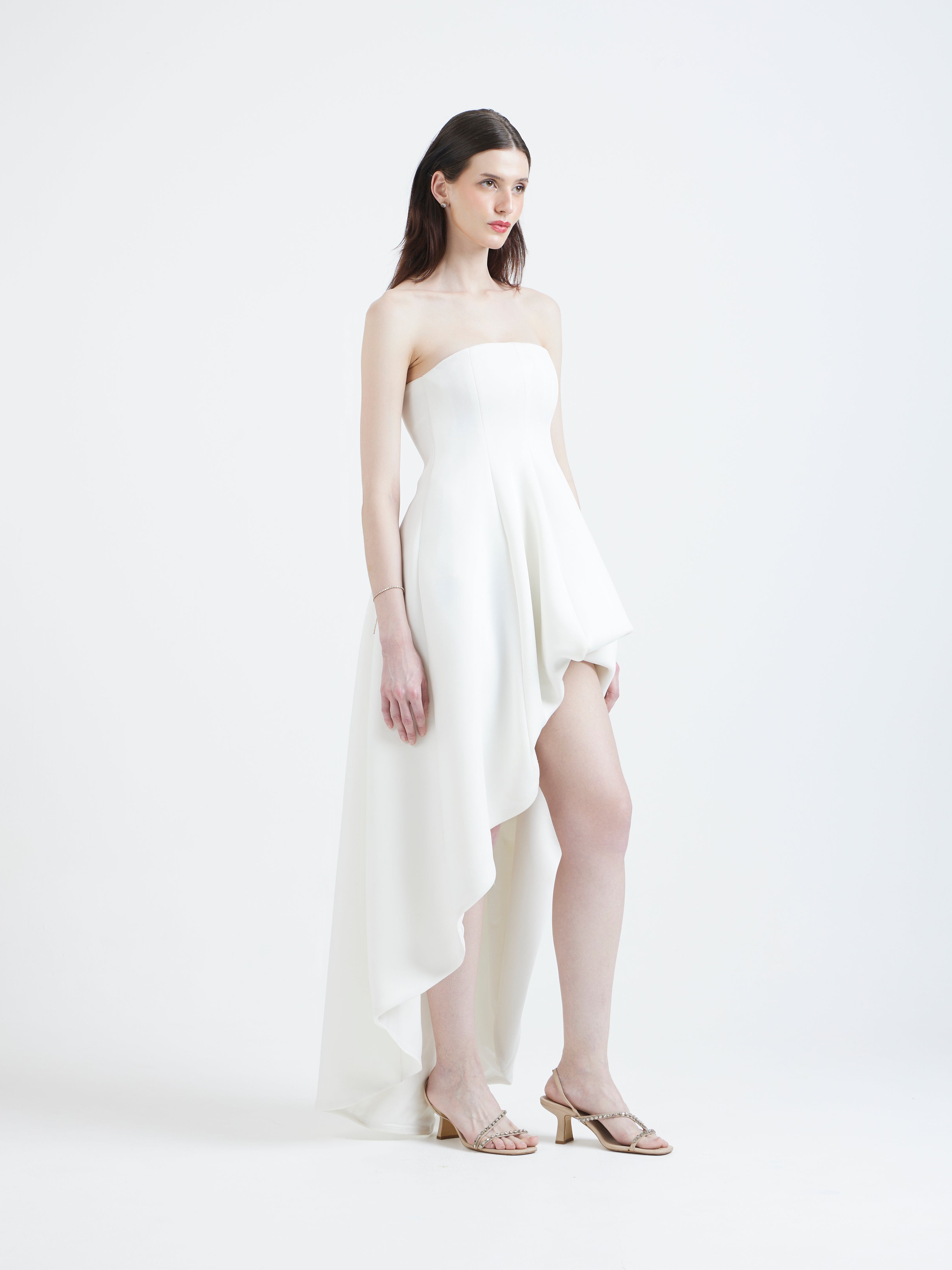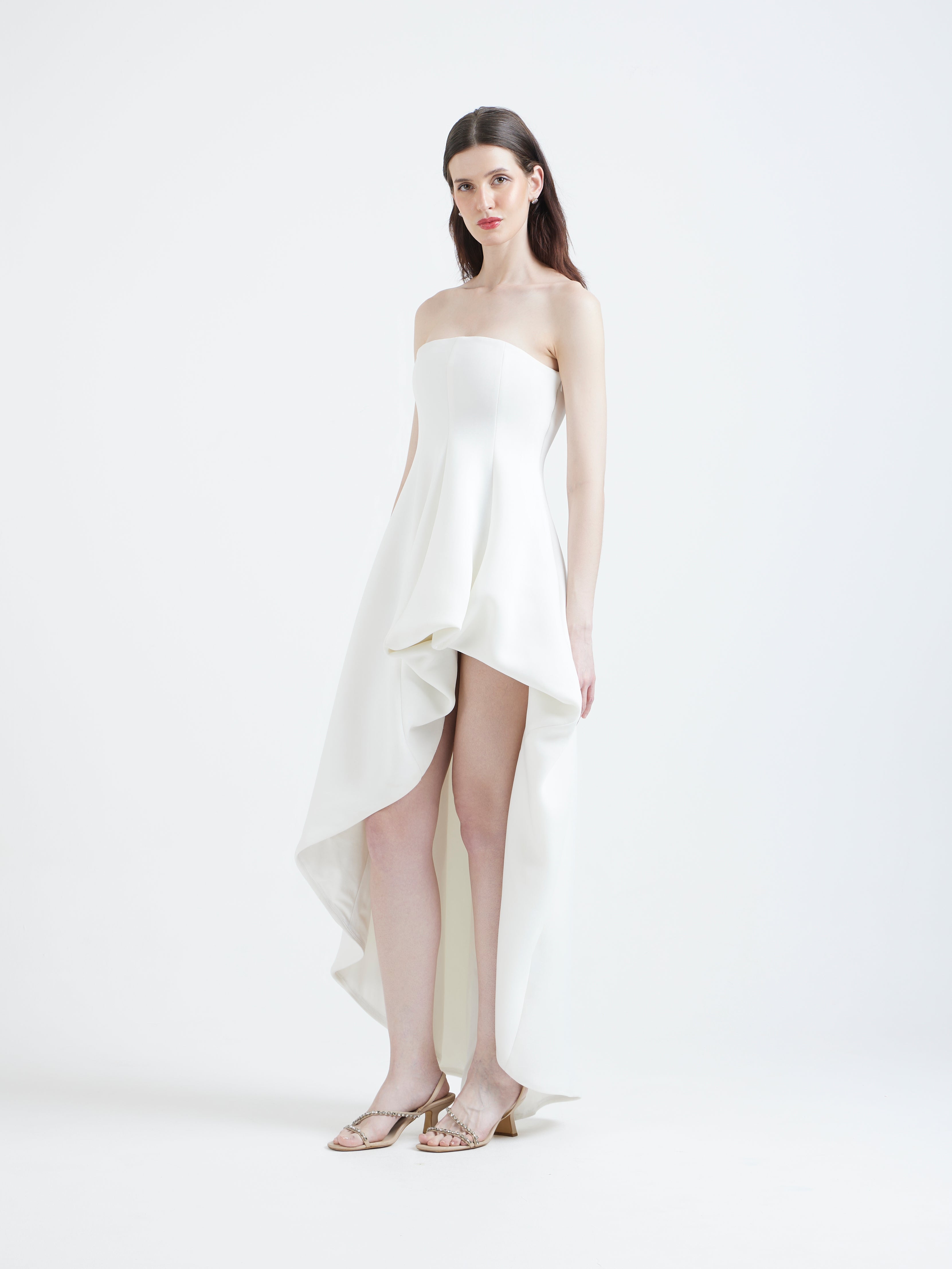 Introducing the Juliette dress—a striking strapless silhouette in deep red, adorned with soft floral appliqué cutouts along the hem for a touch of romance. Paired with a versatile classic wrap that can be styled off-shoulder or one-shoulder, Juliette transforms effortlessly for any occasion. This elegant ensemble combines timeless charm with modern sophistication, making it a perfect choice for special events.