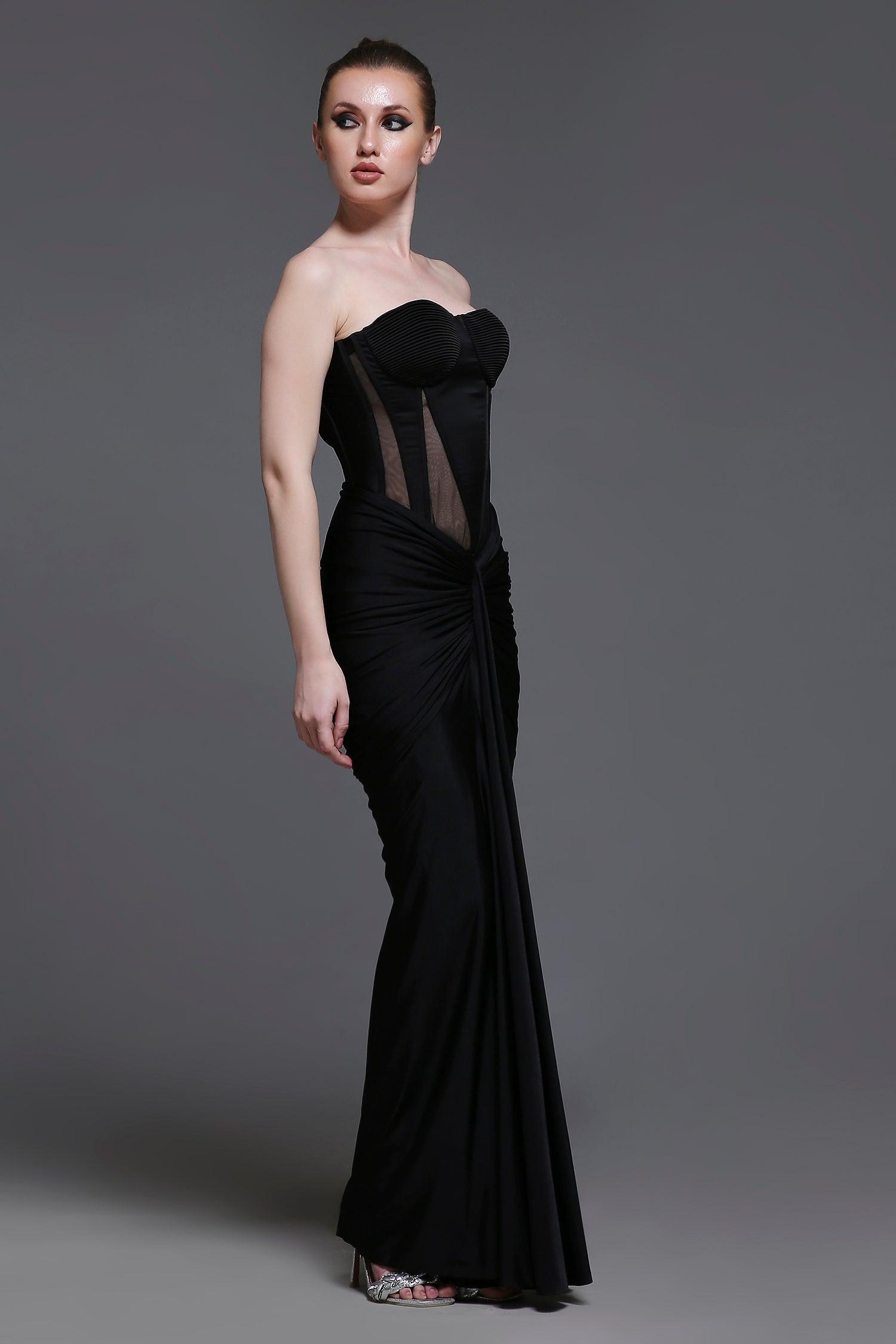 Our Georgia Set combines elegance and structure with a corset featuring detailed cups, mesh panels, and a tie-up back for a customizable fit. The matching fitted draped skirt is enhanced with subtle ruching for added texture, creating a flattering and sophisticated look. Perfect for any special occasion.