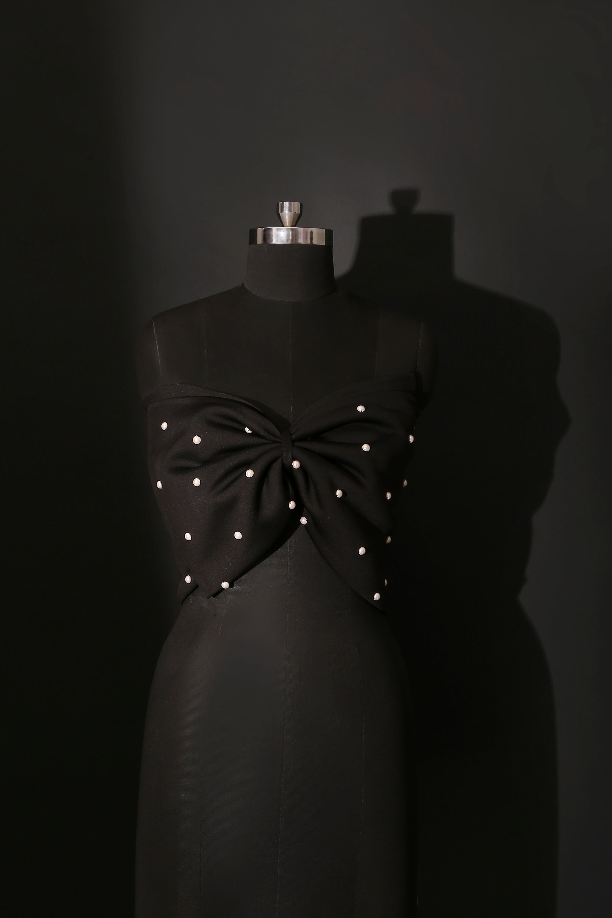 Sculpted into a bold, voluminous bow silhouette, this piece sits beautifully across the bust, creating a striking focal point.