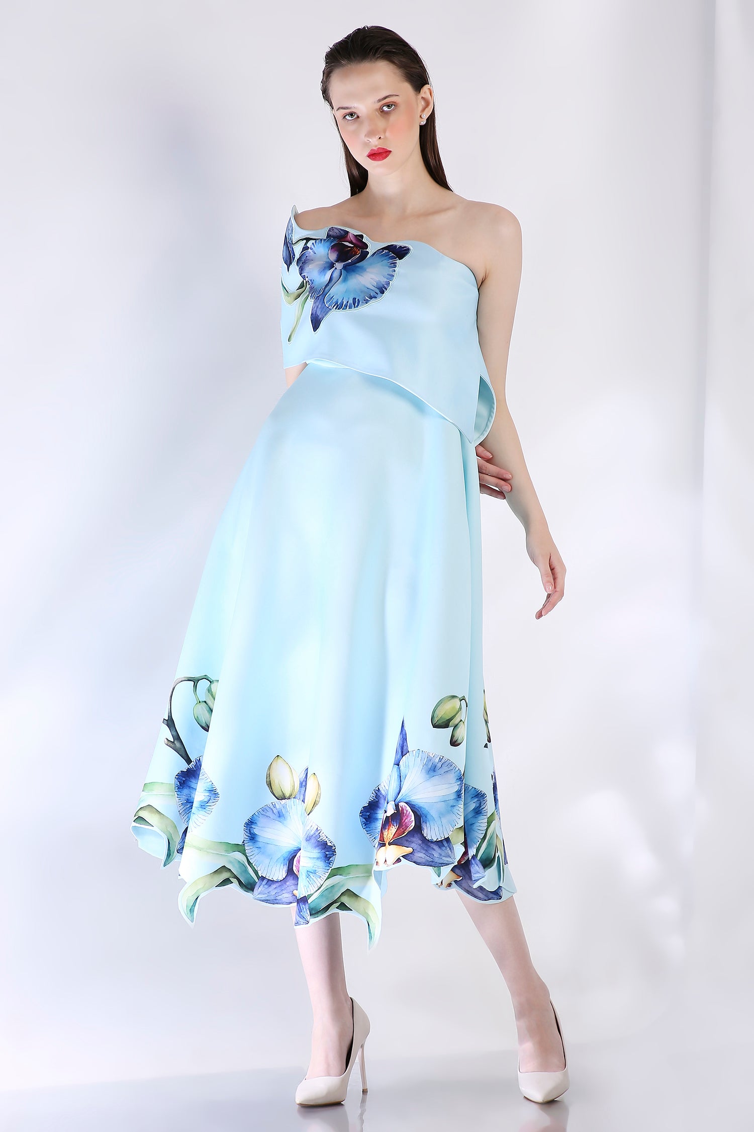 The Rosela dress embodies elegance with its intricate floral design, emphasised with cutwork around the hem.